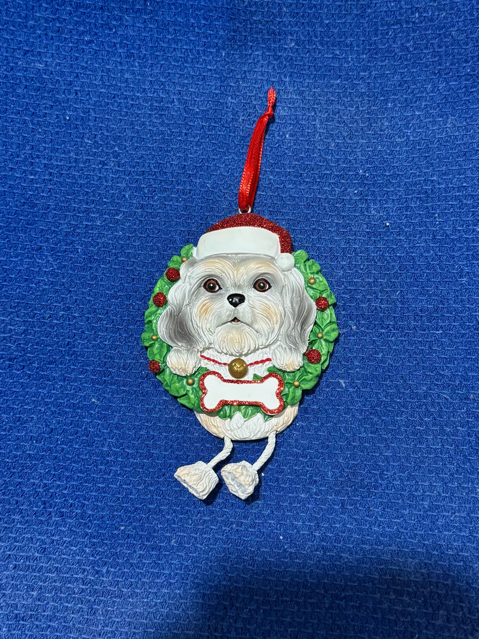 Adorno de tipo colgante de Shih Tzu navideño, personalizable con el nombre de tu mascota.